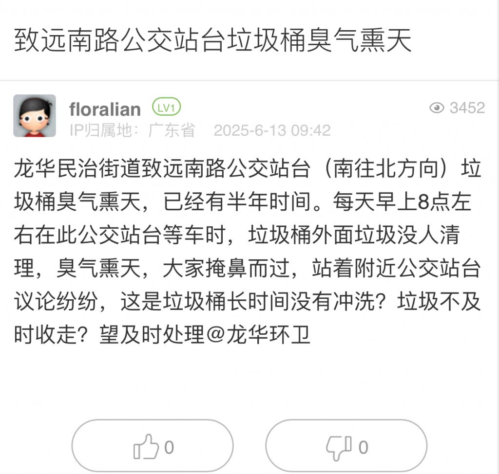 15. 帖文《致远南路公交站台垃圾桶臭气熏天》