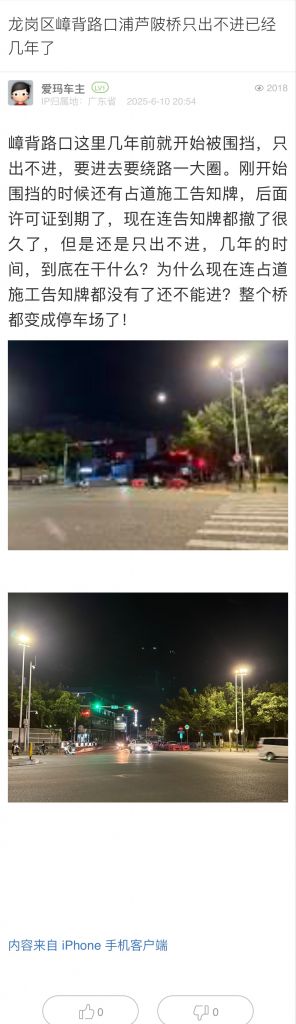 8. 帖文《龙岗区嶂背路口浦芦陂桥只出不进已经几年了》