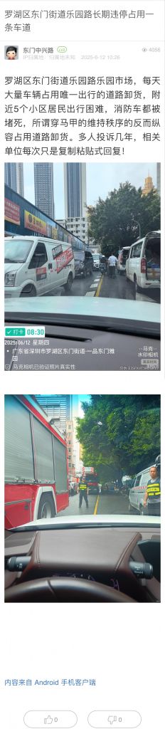 11. 帖文《罗湖区东门街道乐园路长期违停占用一条车道》