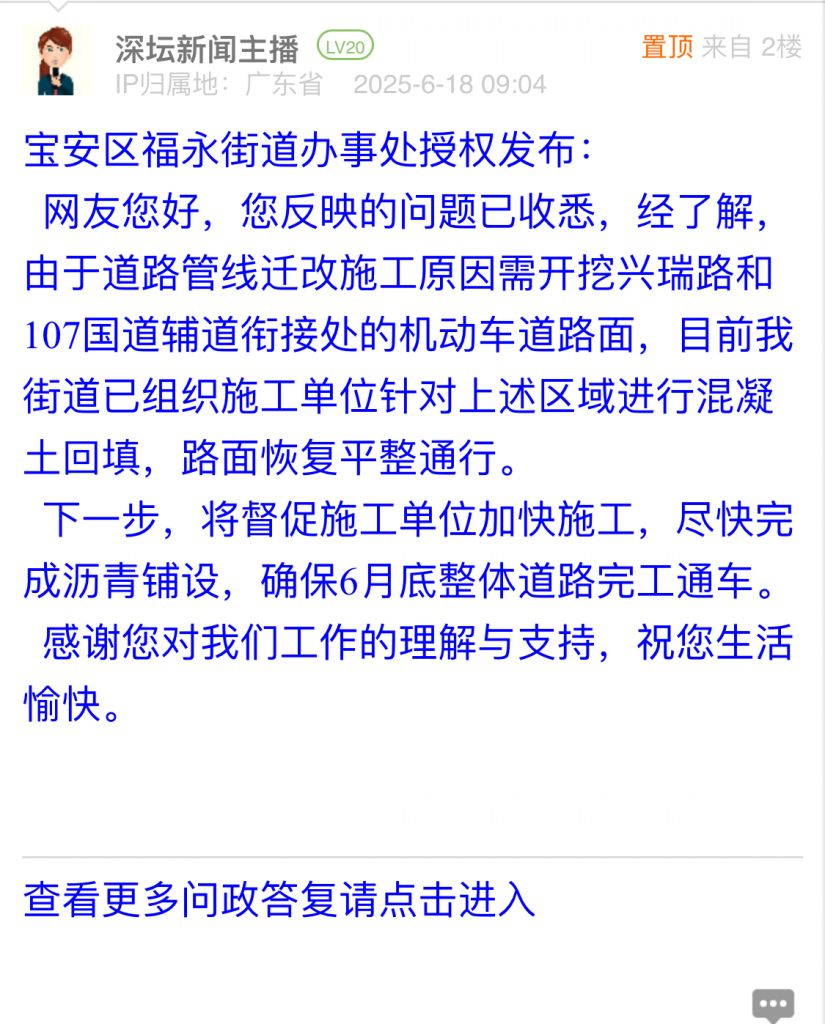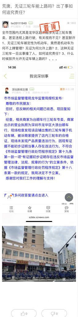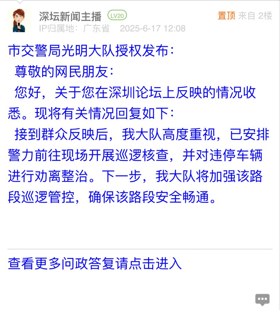 各职能单位如需对网友反映的问题进行回应,可在深圳论坛注册官方账号并通过认证,回帖进行回应。