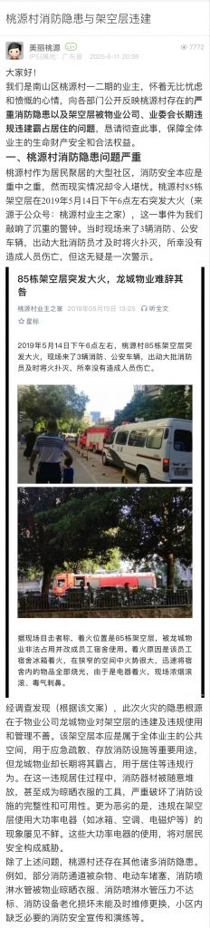 接下来,我街道将持续关注相关情况,业主如有疑问,可联系桃源社区居委会(电话:0755-26970567)反映。