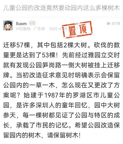 20. 帖文《儿童公园的改造竟然要动园内这么多棵树木》