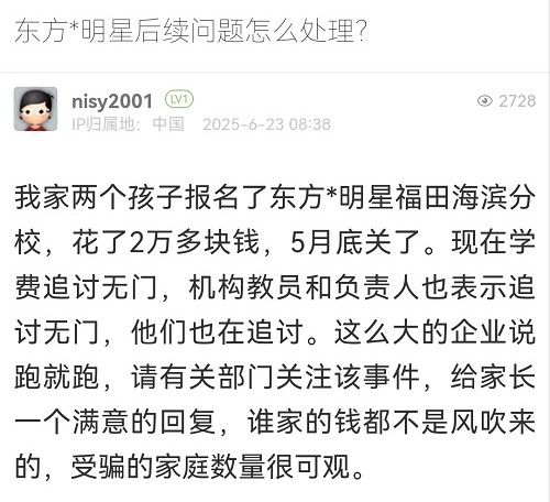 网友您好,收到您反映的问题后,我局第一时间组织前往核查,有关情况如下: 经检查,北京东方启明星体育文化发展有限公司深圳分公司、深圳市乾星体育文化发展有限公司福田分公司不在其登记的住所经营办公,通过其登记的住所无法联系,相关情况无法进一步核实,我局已将其载入企业经营异常名录。下一步,我局将持续关注该企业经营状态,会同文体等部门共同处置,全力保障群众权益。 感谢您对我们工作的监督、理解和支持!