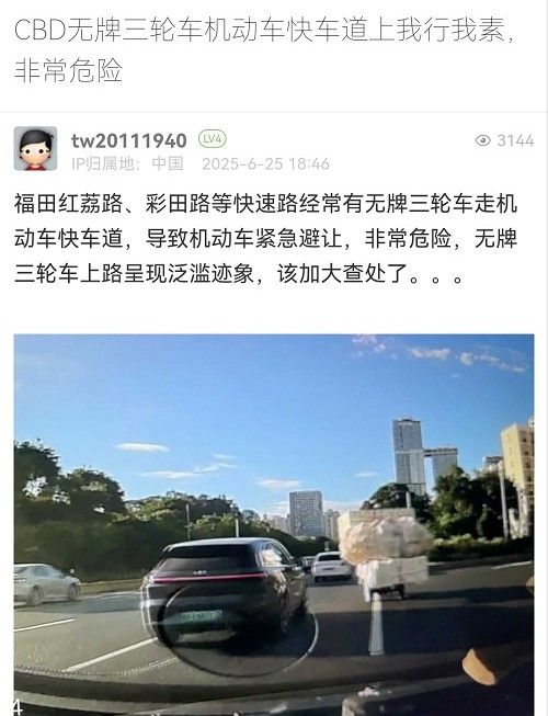 8. 帖文《CBD无牌三轮车机动车快车道上我行我素,非常危险》