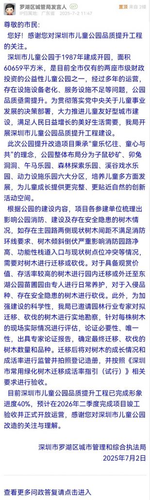 您好!感谢您对深圳市儿童公园品质提升工程的关注。
