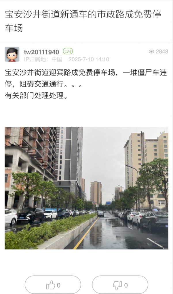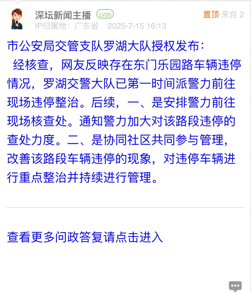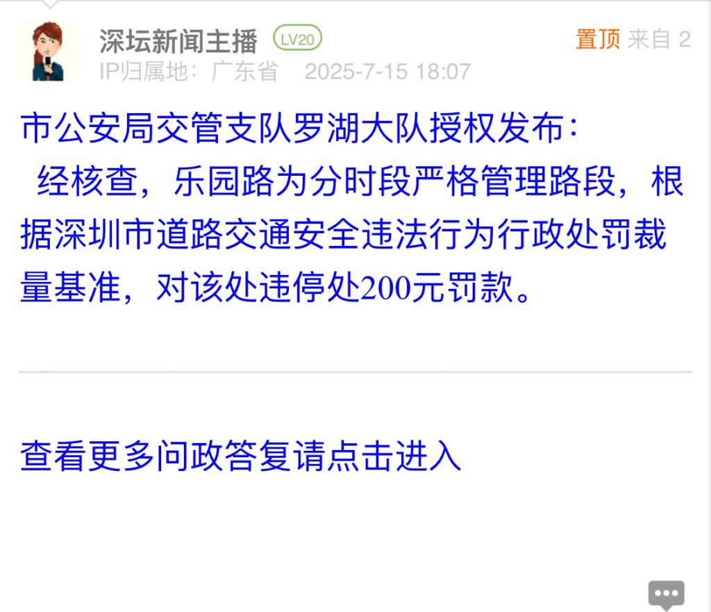 19. 帖文《罗湖区乐园路设置的即停即走车位非常不合理!严重影响片区交通秩序》