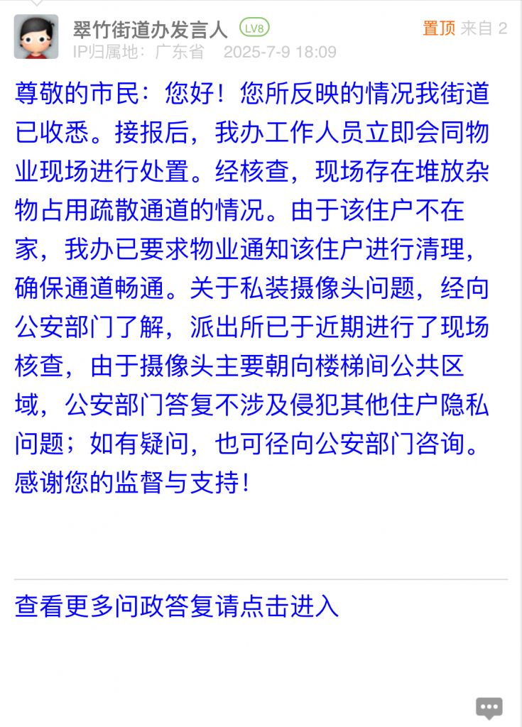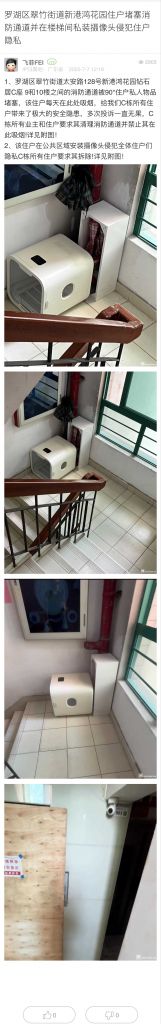 3. 帖文《罗湖区翠竹街道新港鸿花园住户堵塞消防通道并在楼梯间私装摄像头侵犯住户隐私》