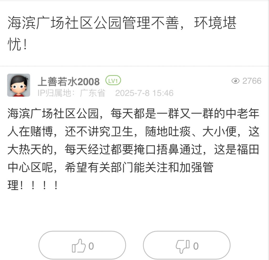 10. 帖文《海滨广场社区公园管理不善,环境堪忧!》