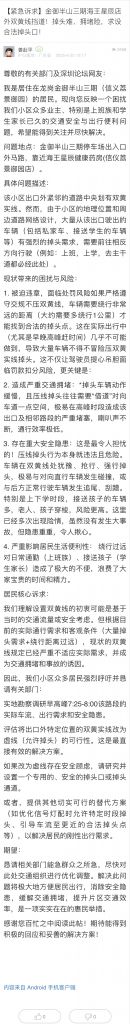 37. 帖文《【紧急诉求】金御半山三期海王星辰店外双黄线挡道!掉头难、拥堵险,求设合法掉头口!》