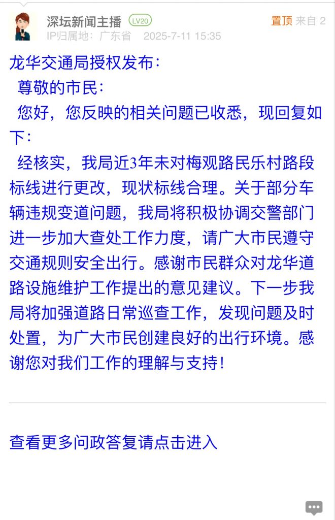 11. 帖文《关于梅观路与民乐村西出口标志标线问题的诉求与建议》