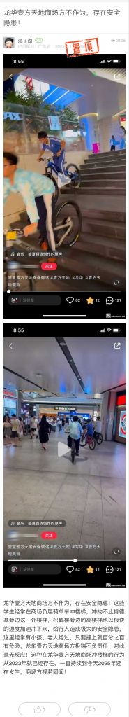 22. 帖文《龙华壹方天地商场方不作为,存在安全隐患!》