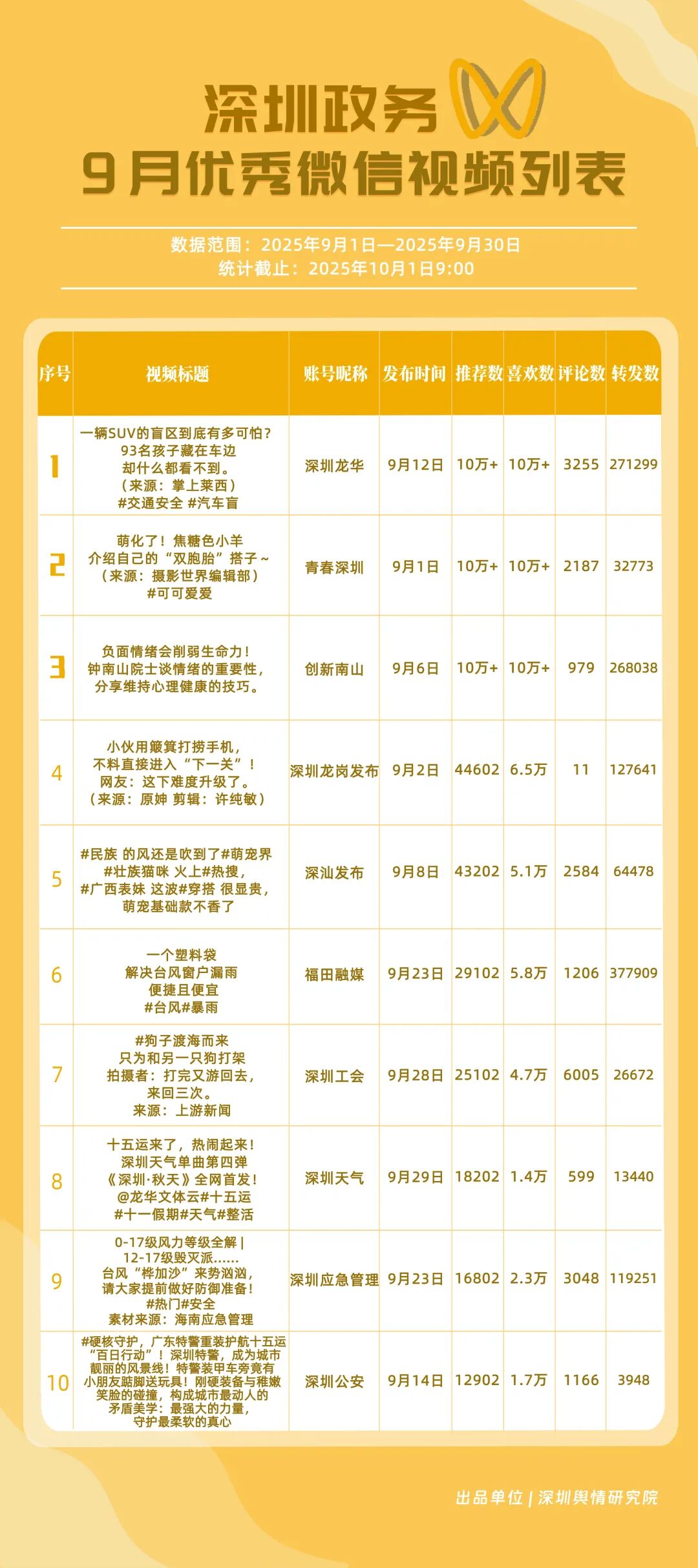 四、9月深圳优秀政务新媒体账号