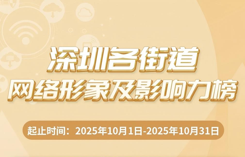 10月,各街道主动深耕社交平台的传播规律,优化拓展基层治理,《深圳各街道网络形象及影响力榜》(10月榜单)编制完成。