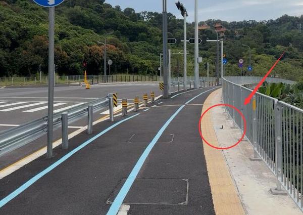 光明区此处盲道边有“钉子”?官方:系安全监测装置,已拆除