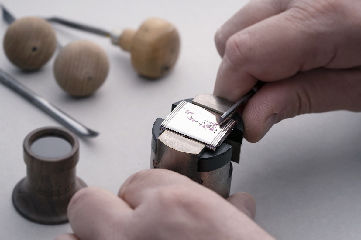 任何一位拥有精钢或玫瑰金款 Reverso翻转系列腕表(无论是全新腕表或是二手腕表)的朋友,都可提出在表壳背面进行镌刻的需求。通过在线辅助工具 (https:/ /engraving.jaeger-lecoultre.com),积家令世界各地的朋友均能进行简单直接的操作。网上提供的标准选项,包括多种字体样式的缩写或日期、简单文本或生肖,皆可添加彩漆以突出设计。定制设计可基于照片、草图,甚至只是一个想法在线下定制。积家大工坊的设计师与镌刻师拥有高超技艺,为您提供无限可能。