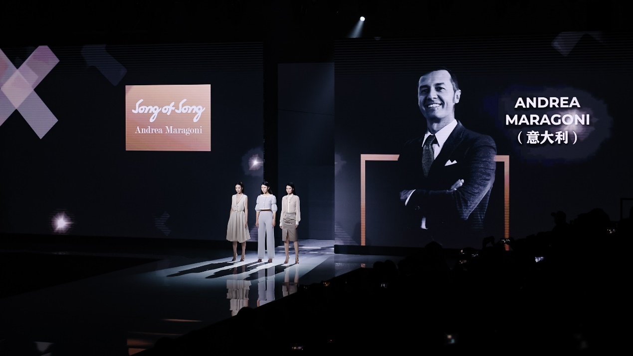 第一届YINGER PRIZE联名款发布秀上,精彩不断。10位设计师为音儿、恩裳、诗篇、歌中歌、十二篮等品牌注入新的灵感。其中,梅赫理•霜/刘世洋、来自意大利的Andrea Maragoni、Sabina Fragata、黄芸芸、何平这5位设计师均与歌中歌合作发布联名款。