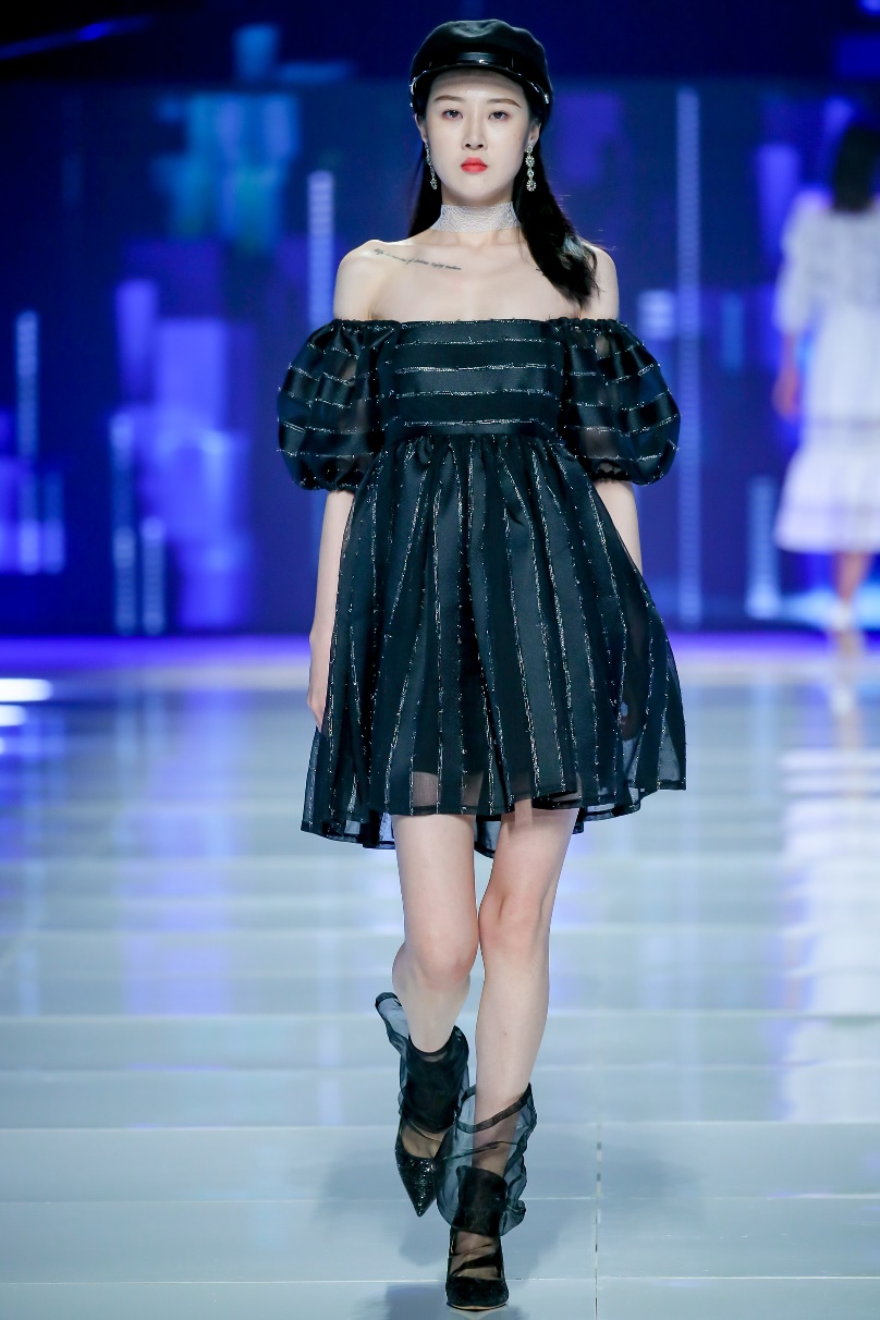而同样与诗篇合作的王珏伈则呈现出截然不同的风格,“说到进化,大概脑中浮现的都是类似DNA形状的图形,我选用织带点缀在成衣上,通过在领子/门襟/裙摆等位置添加的细节加强系列感。”在这次秀场上,她所设计的联名系列“Evolution of PSALTER”在使用光滑、高级感强的面料时加入甜美和不羁的设计细节让造型更加“叛逆”,给人留下了深刻的印象。