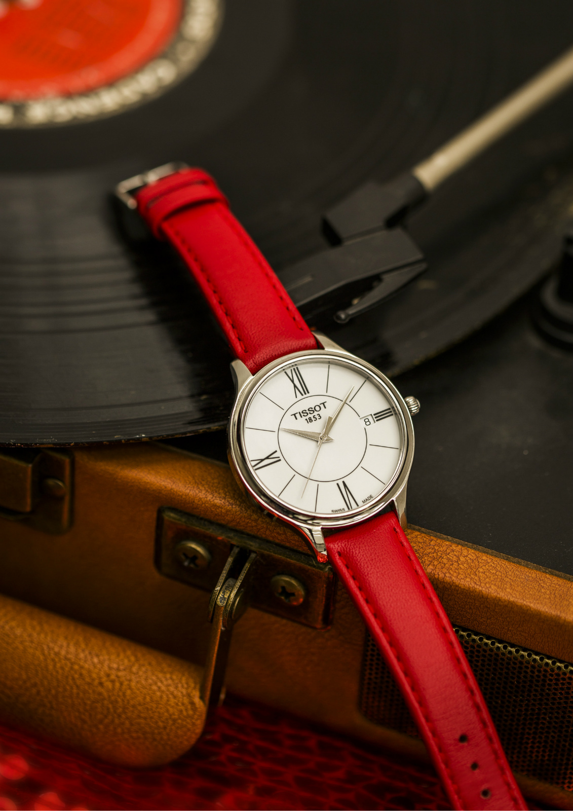 传统与创新,经典与简约,在臻时系列腕表之上碰撞融合成和谐的永恒风格。此系列腕表以圆形经典设计代替了以往椭圆形的表盘设计,更显女性的唯美优雅。臻时系列名于意大利语“Bella Ora”,意指“美丽的时间”,灵感来源于将时尚与古典完美相融的意大利风格,全新的臻时系列继续秉承了这种特质,既能驾驭任何盛装,又能随意搭配休闲风格。此外,臻时系列腕表为女性设计了两条可随意互换的表带,是该系列腕表的别具匠心之处,为女性的百变造型增加许多乐趣。该系列腕表有着浑然天成的雅致气质,纯粹简约的大表盘设计,搭配复古神秘的罗马数字时标或者现代简洁的阿拉伯数字时标,为女性赋予了不同的时尚雅韵之美。三点钟时标的日历显示,则体现匠人对于精准的用心。加之表冠上镶嵌着珍珠贝母与凹刻花纹设计,更能进一步地凸显天梭表一贯对腕表设计工艺的追求,从而赋予该系列表款一种唯美雅致的特性。这是一款随心而生的腕表,秋日里,美丽的时间应该伴随着一颗积极向上且期待收获的心情。