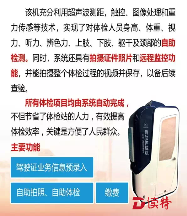 记者了解到,自助体检是车管所新推出的服务项目,市民在机器上按指示操作,有医生在远程后台审核,5分钟左右,所有的体检项目就可以完成了,医生审核过的体检报告在后台生成并上传至交警审核。如果市民有需要,也可以在现场将体检报告打印留底。