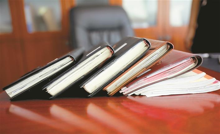 打开办公桌左边的柜子,高桂秀抱出了一摞笔记本,大大小小的本子有十本之多,这是高桂秀工作两年多来所有的工作记录。其中最厚的一本厚度近3厘米,封面写着“2018年7月9日——11月9日”,高桂秀告诉记者,那段时间是股份公司换届和城中村改造最关键的时期。