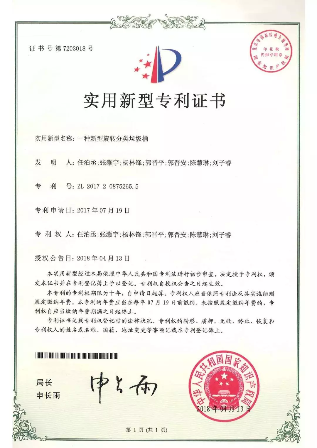 智能垃圾桶获国家专利