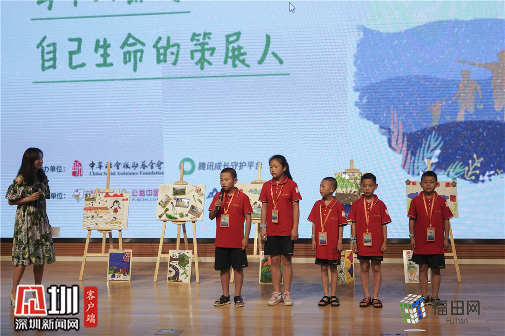 深圳新闻网8月12日讯(见圳客户端、深圳新闻网记者 黄思凌)8月11日下午,腾讯滨海大厦迎来了一群特殊的小策展人,他们带着他们的作品在这里展出,并表达自己关于创作的思路与观点。30位小策展人,年龄在7岁到13岁之间,来自湖北恩施11个乡村小学。他们的父母平时在外打工,其中有一半在深圳及周边,几乎只有过年的时候才能跟他们相聚,甚至,几年才能相聚一次。