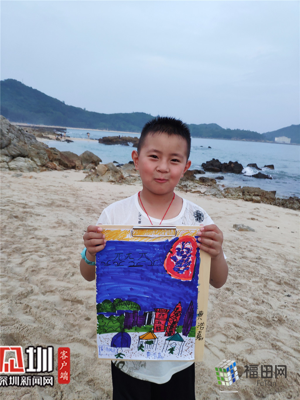 这是我眼中的深圳,既有高楼大厦,也有山和海。我喜欢它,所以我把它画下来”