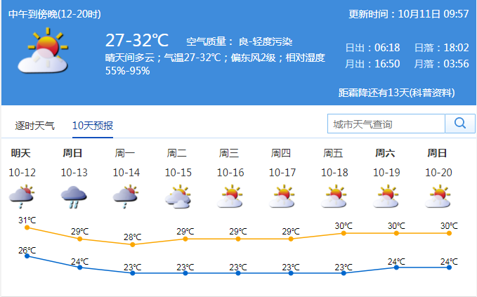 见圳客户端·深圳新闻网2019年10月11日讯 据深圳市气象局消息,今日深圳晴天间多云;气温27-32℃;偏东风2级;相对湿度55%-95%