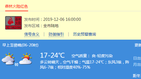 日间空气干燥 深圳市森林火险红色预警信号生效中