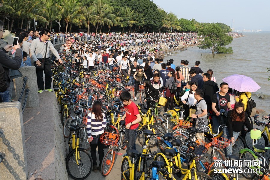 深圳人假日勤动脚,深圳湾公园被自行车堵了