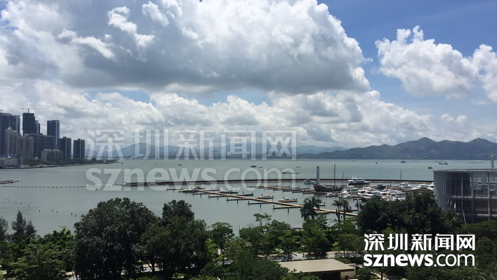 在酒店临海客房阳台可看到深圳湾大桥以及附近的游艇码头