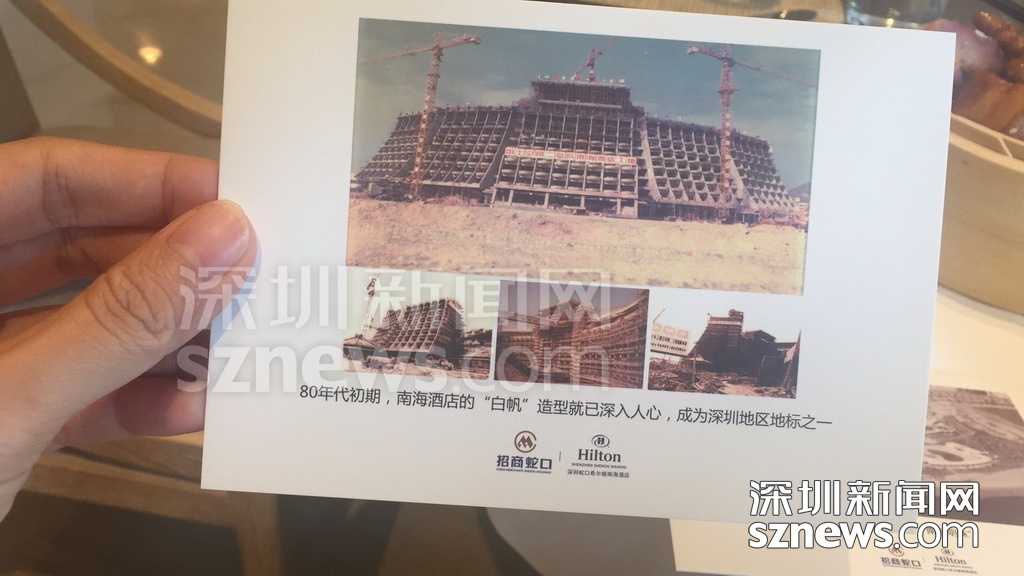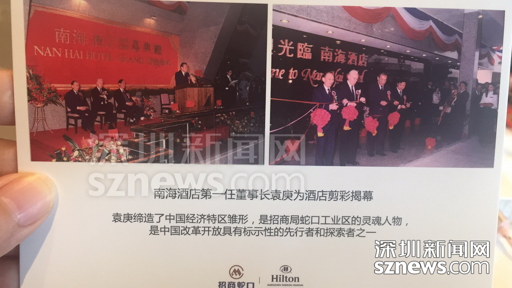南海酒店如今的全称是深圳蛇口希尔顿南海酒店,由招商局蛇口工业区控股股份有限公司投资兴建并由希尔顿管理经营。南海酒店于1983年9月25日正式动工,是深圳最早的五星级酒店,也是最早承担涉外接待业务的高端酒店,1986年3月26日,南海酒店第一任董事长是时任招商局集团常务副董事长的袁庚,第一任总经理是杨秉正。