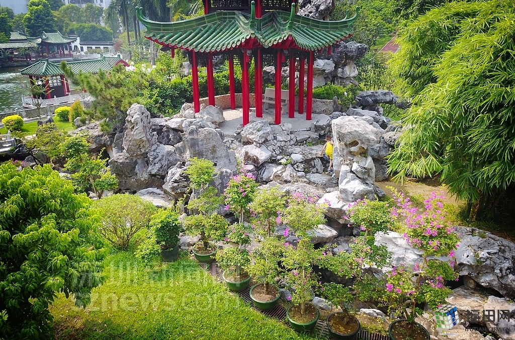 园内有古树,且树木成荫、古亭假山小桥流水,景色怡人。