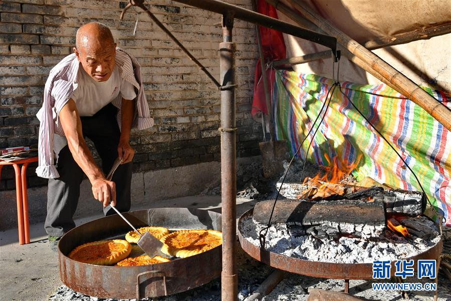 9月22日,段富善在翻看月饼的烘烤情况。 中秋节来临之际,山西省晋城市泽州县南岭乡段河村的段富善一家人忙碌起来,他们家制作的“柴火月饼”远近闻名。 “柴火月饼”起源于明清时期,馅料以糖搭配花生仁、芝麻、玫瑰等,有近10道制作工序,其中最有特色的是木柴烤制工艺,烘烤师傅必须掌握好火候,才能烤出外皮酥脆、馅料飘香的月饼。 新华社记者 曹阳 摄