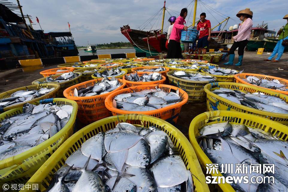 今秋海南开渔以来,南海不时出现风雨天气,给渔业生产带来影响。近日,随着天气的好转,海南渔民加紧出海捕捞作业。当日,一艘艘渔船陆续返港卸下渔货,源源供应各地市场。