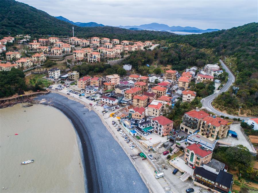 空中俯瞰朱家尖乌石塘的临海民宿(12月15日无人机拍摄)。新华社记者 徐昱 摄