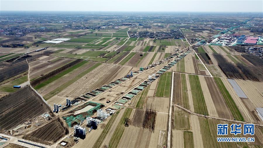 这是京雄城际铁路施工现场(3月20日无人机拍摄)。新华社记者 杨世尧 摄