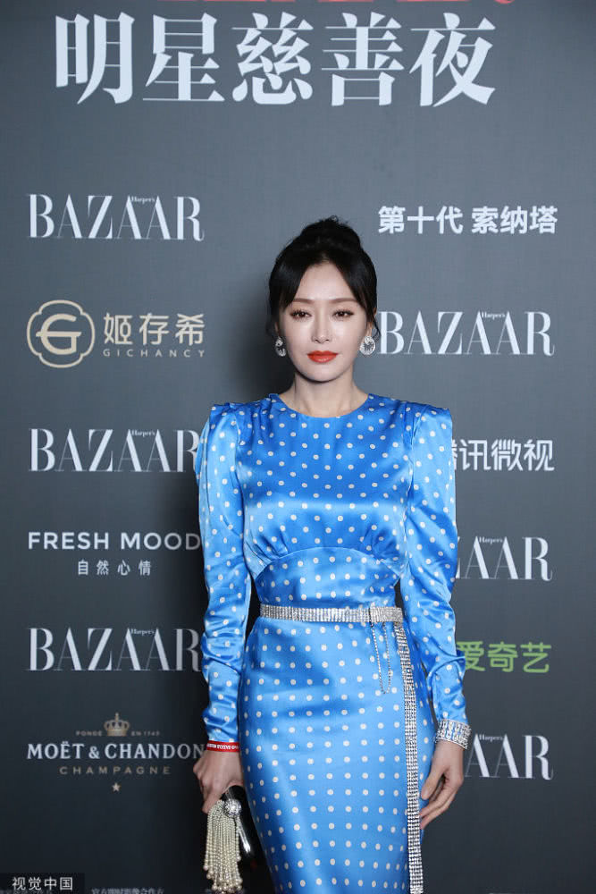 秦岚蓝裙清雅华贵大方。