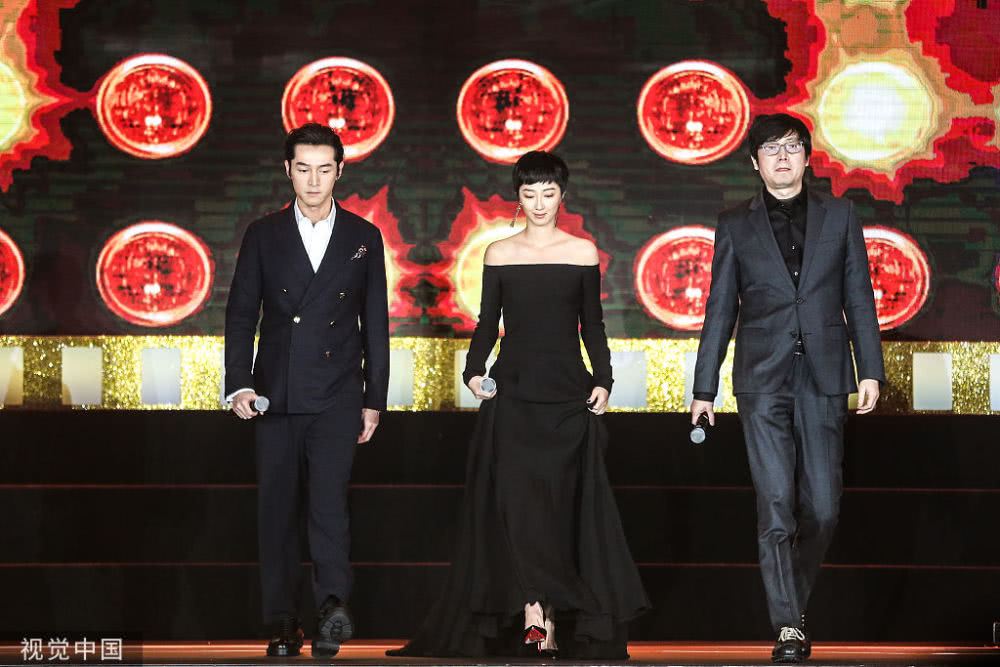胡歌、桂纶镁与导演刁亦男登台。