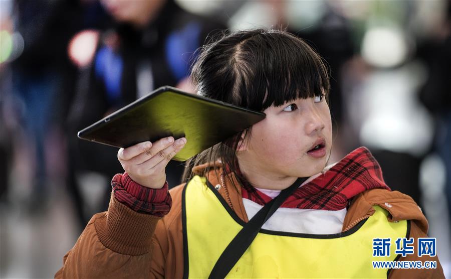 1月14日,一位小朋友在西安北站候车大厅与家人通话。路再远、再艰辛,也挡不住回家的脚步。在西安北站的每一个角落,处处充满温情和归乡的盼望。连日来,西安北站日均发送旅客12.1万人次,一列列春运的列车,载着中国人的乡愁,驶向远方。新华社记者陶明摄