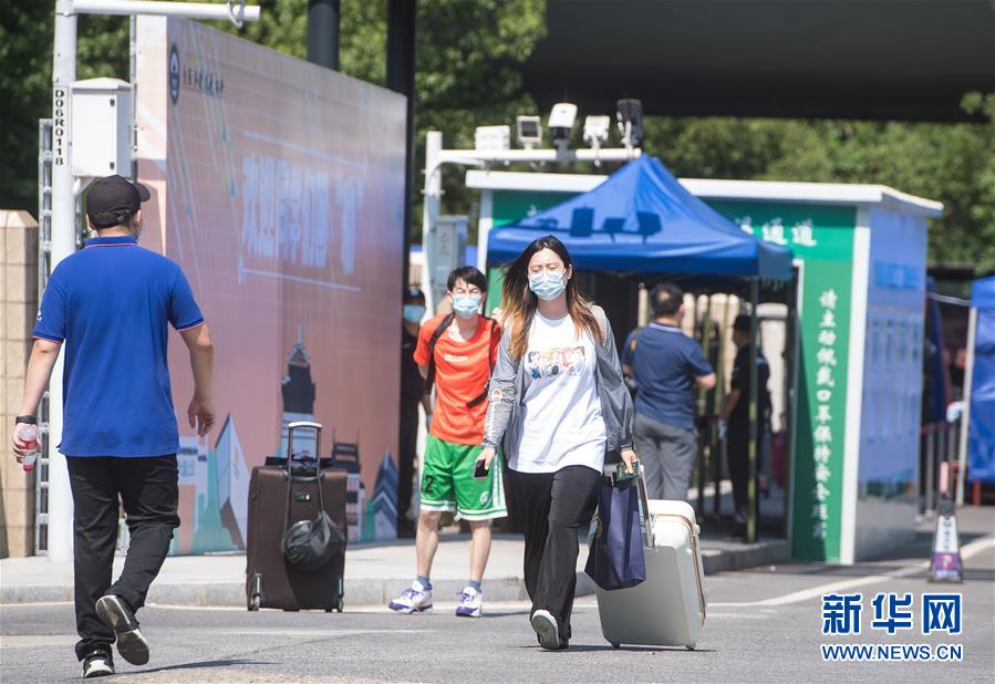 6月8日,在武汉大学,返校学生步入校园。6月8日起,武汉大学、华中科技大学、武汉理工大学、华中师范大学等多所武汉高校迎来首批返校毕业生。新华社记者肖艺九摄