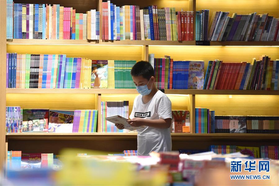 7月5日,一名小朋友在河北省定州市新华书店阅读图书。近日,河北省定州市新华书店在做好疫情防控的前提下,开展“乐享图书嘉年华”系列活动,通过举办图书联展、亲子阅读、少儿读物推介等活动,吸引少年儿童走进图书馆,感受书香陪伴的夏天。新华社记者朱旭东摄