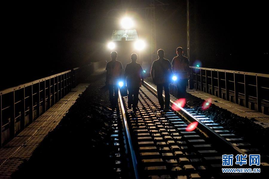 钢轨打磨机组的技术员进行钢轨巡检(7月14日摄)。新华社记者 丁磊 摄