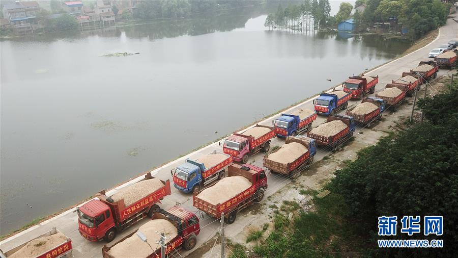 7月17日,在岳阳市华容县华容河附近,货车用“以车代仓”方式储备防汛物资(无人机照片)。为力争安全度汛,湖南省岳阳市华容县织密人防、物防、技防“三防”网络,加强应急值守和巡查排险工作,采取“以船代仓”“以车代仓”等多种方式灵活储备防汛物资,在险工险段布置摄像头实时监控,利用无人机对人员难以到达的位置进行巡查。新华社记者陈泽国摄