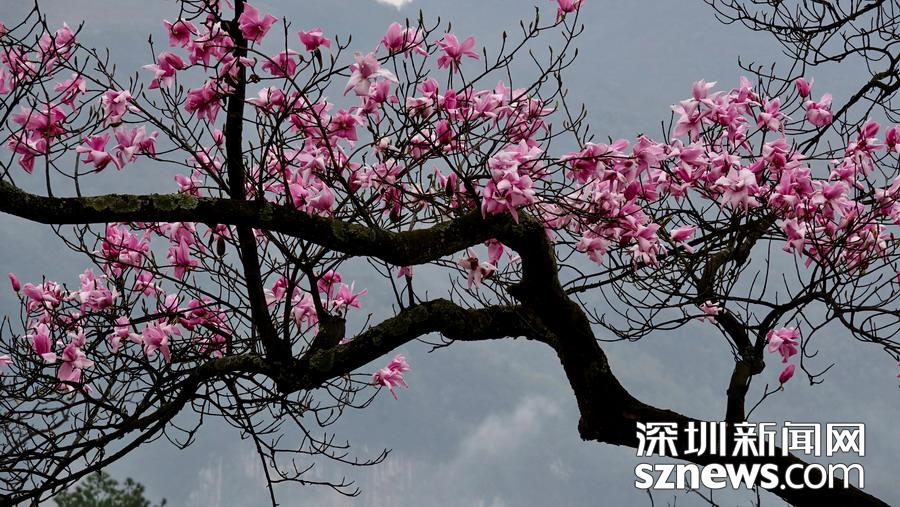 雨雾濛濛之中观赏盛开的辛夷花,宛若置身仙境......李仁奇 摄