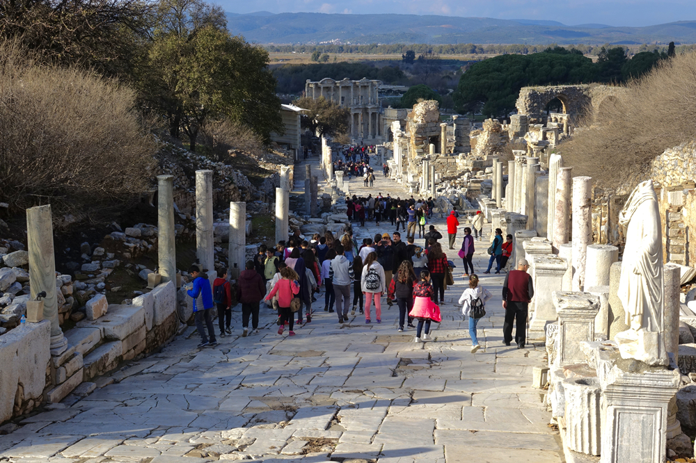 库里特斯街。是以弗所主要的街道,其两侧仍存有许多遗迹,沿着街道缓坡可到达上层的市政厅。李仁奇 摄