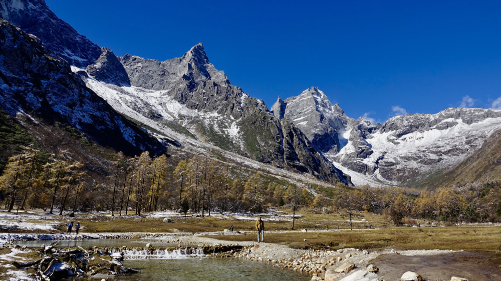 高山上融化的雪水汨汨而下,形成了溪流,溪流在草甸中潺流,溪水冰凉刺骨。李仁奇 摄