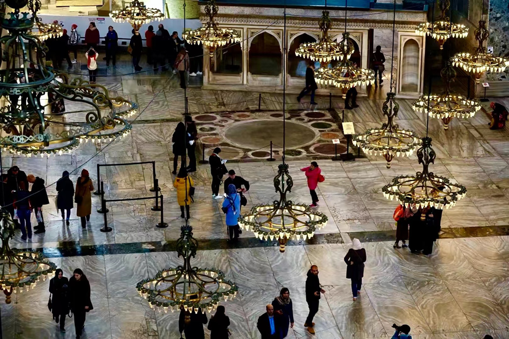 整个大堂都挂满了六瓣花形的清真寺风格吊灯。李仁奇 摄