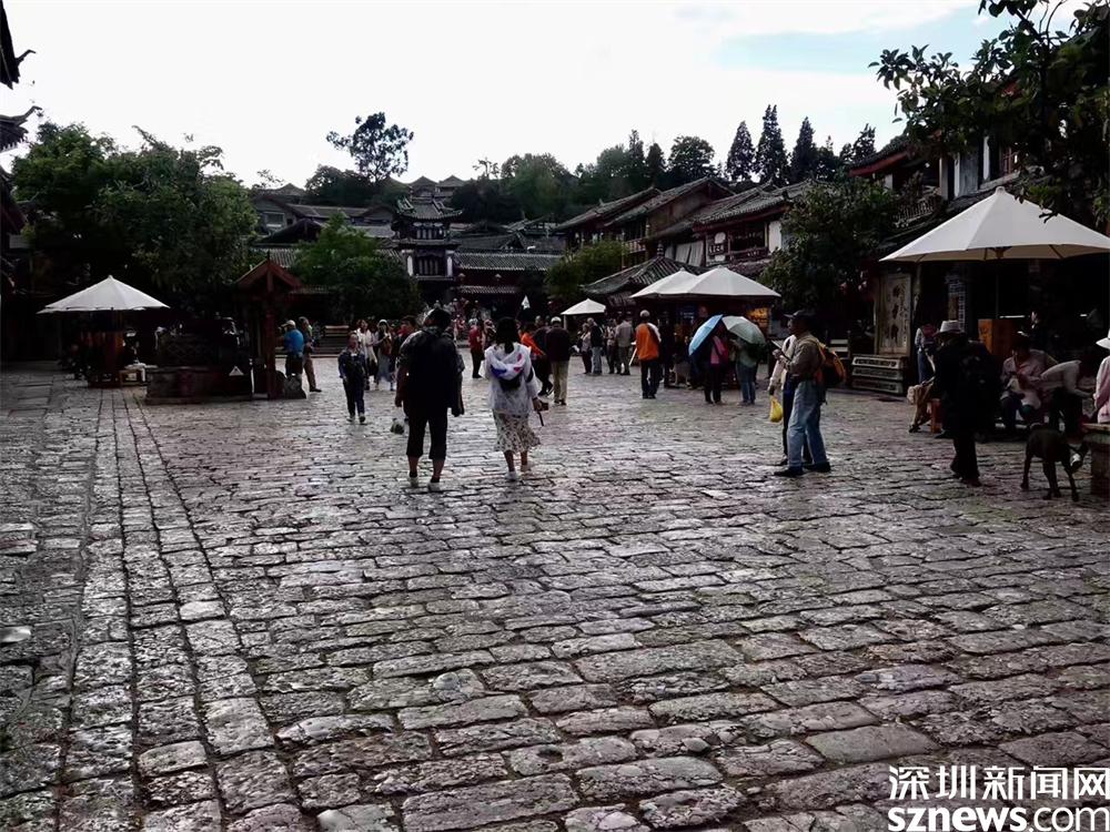 四方街是古城的中心,最早是丽江纳西族的集贸市场,现在集市贸易的功能没有了,可是每天早上纳西人在这个地方跳他们传统舞蹈的习俗一直延续着。李仁奇 摄