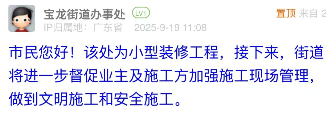 优化建议:该回应较为空泛,市民明确反映了“砸墙声严重扰民”“存在安全隐患”的核心诉求,但回复仅笼统说明是“小型装修工程”并“督促加强管理”,未针对关键诉求提出具体解决方案。建议减少“加强管理”类模糊表述,以具体措施回应市民疑问,如若杂物已清理,可附现场图片佐证,若未清理则需明确施工时限、确保施工时间合理,以务实举措回应市民疑问,增强回应温度。